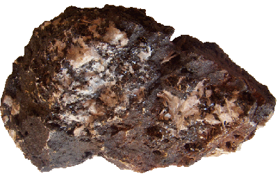 Pero los minerales nunca están solos. Siempre suele haber varios de ellos, unos junto a otros. En la siguiente foto, el mineral de color oscuro se llama siderita, y contiene hierro. Pero pegados a él hay otros minerales, de color más claro, que se llaman yeso y celestina, y que no tienen interés comercial porque no contienen hierro.